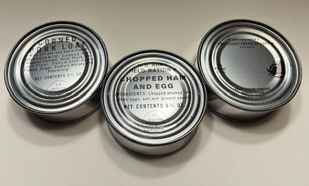 These replica cans are the correct size dimensionally as the originals and have the key tab and simulated tear strip. The cans have the decal of choice applied to them.